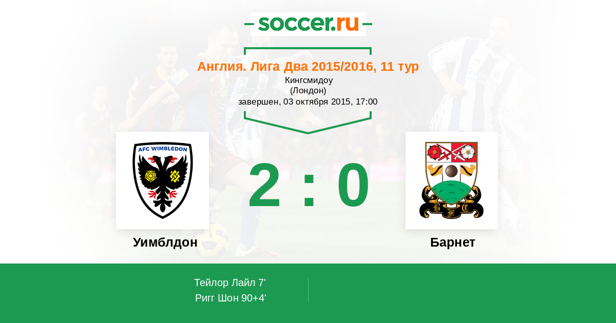 Протокол матча Уимблдон против Барнет