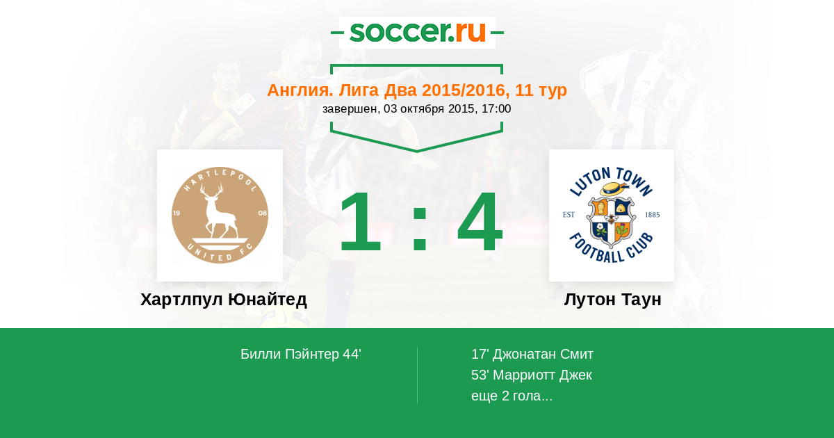 Протокол матча Хартлпул Юнайтед против Лутон Таун