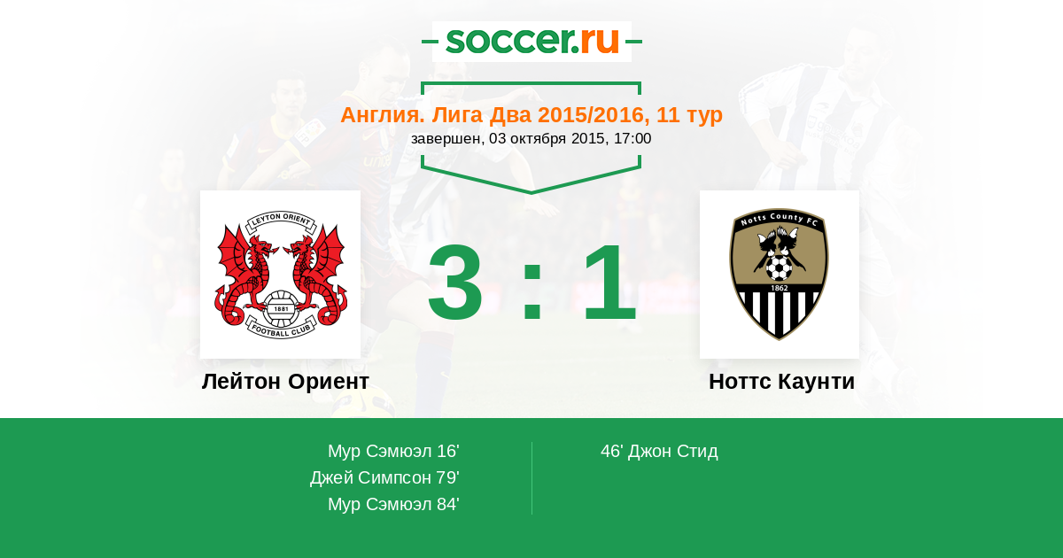 Протокол матча Лейтон Ориент против Ноттс Каунти