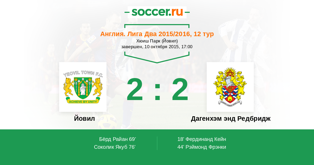 Протокол матча Йовил против Дагенхэм энд Редбридж