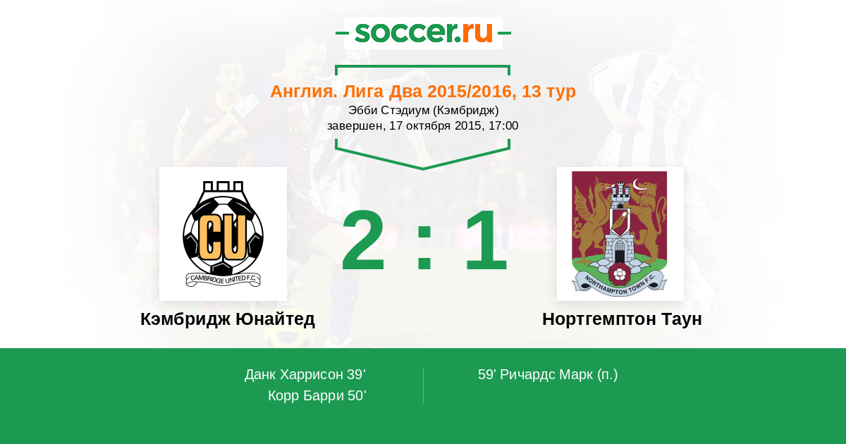 Протокол матча Кэмбридж Юнайтед против Нортгемптон Таун
