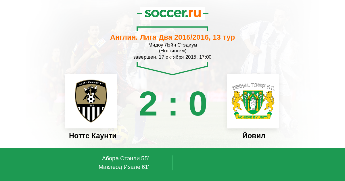 Протокол матча Ноттс Каунти против Йовил