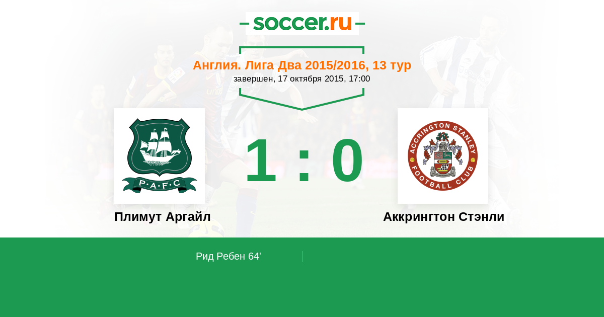 Протокол матча Плимут Аргайл против Аккрингтон Стэнли