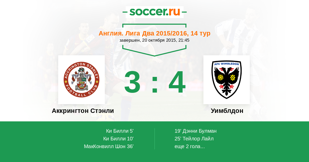 Протокол матча Аккрингтон Стэнли против Уимблдон