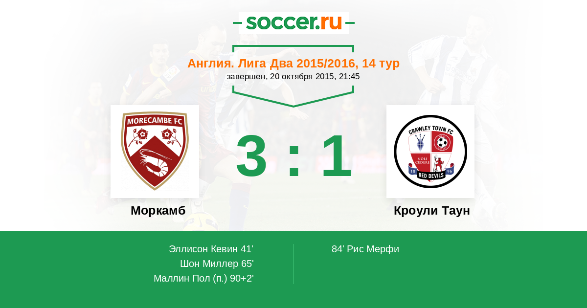 65' (2:0) Шон Миллер (16) (Эллисон Кевин (11))
