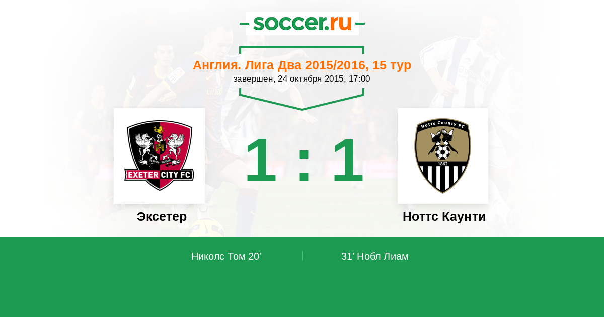 Протокол матча Эксетер против Ноттс Каунти