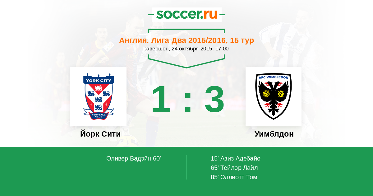 Протокол матча Йорк Сити против Уимблдон