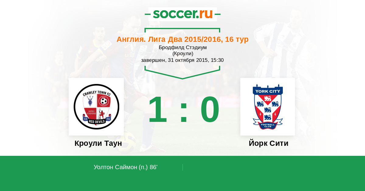 Протокол матча Кроули Таун против Йорк Сити