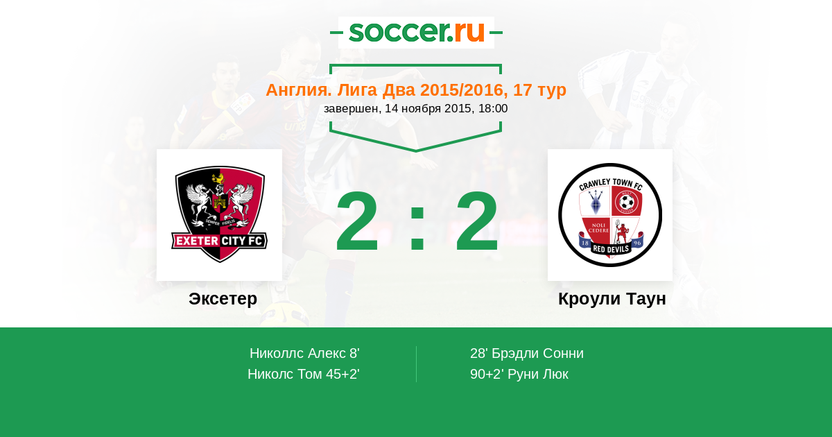 Протокол матча Эксетер против Кроули Таун