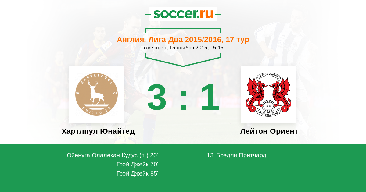 Протокол матча Хартлпул Юнайтед против Лейтон Ориент