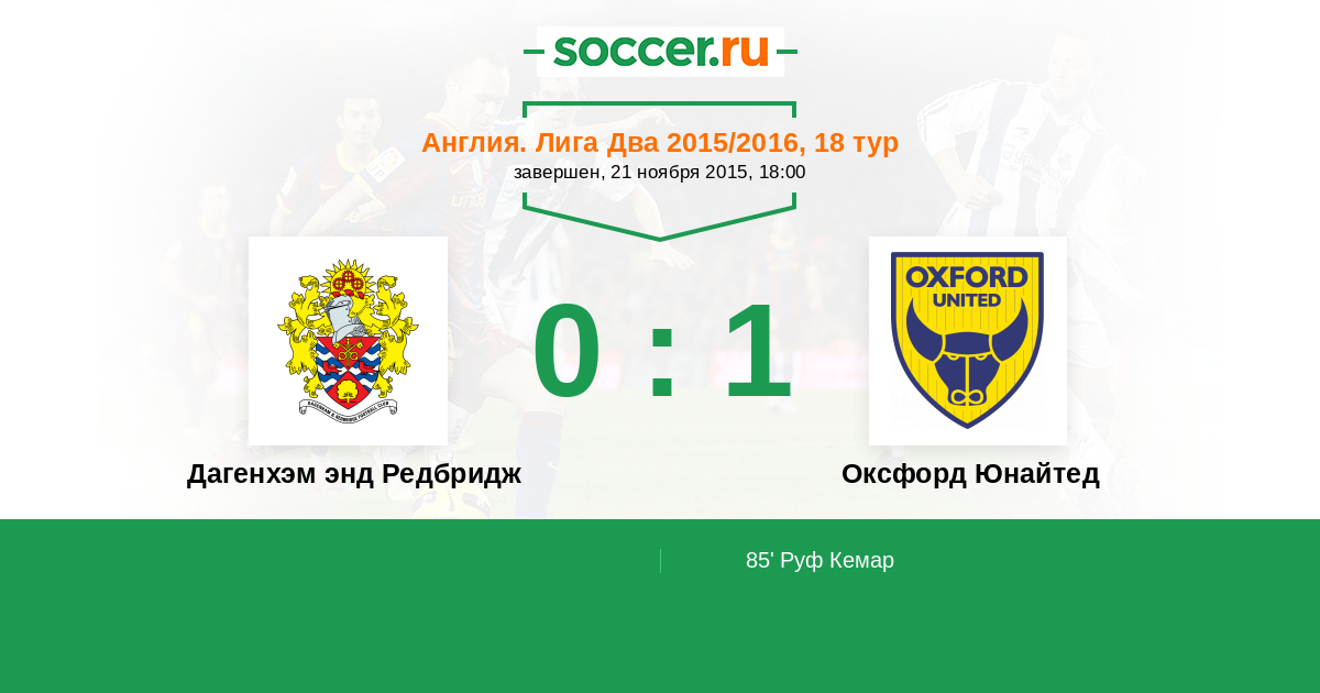 Протокол матча Дагенхэм энд Редбридж против Оксфорд Юнайтед
