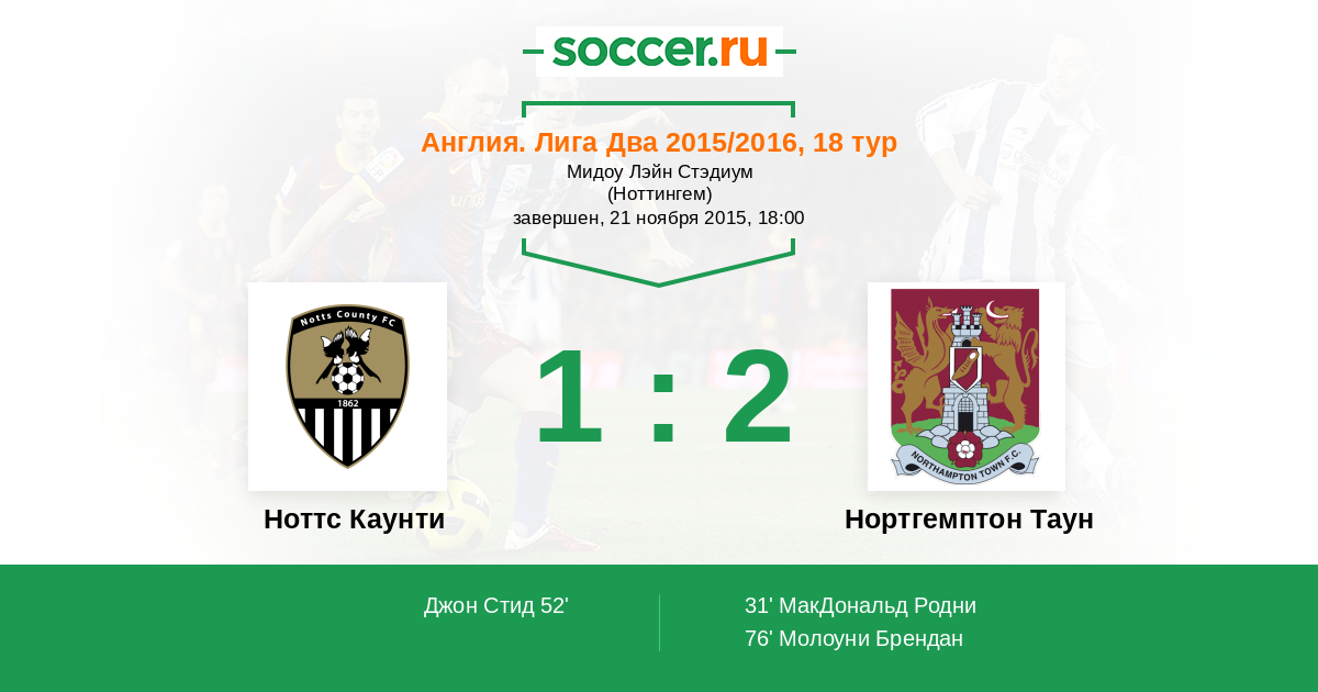 Протокол матча Ноттс Каунти против Нортгемптон Таун
