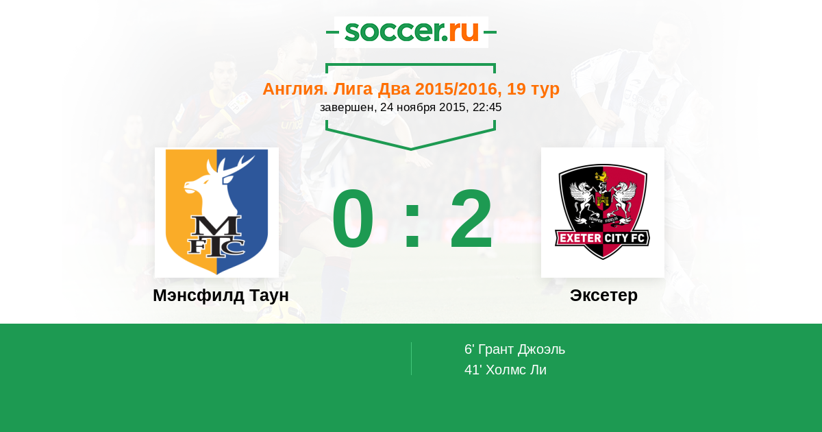 Протокол матча Мэнсфилд Таун против Эксетер