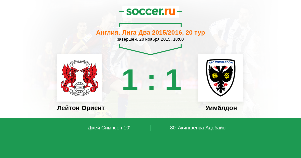 Протокол матча Лейтон Ориент против Уимблдон