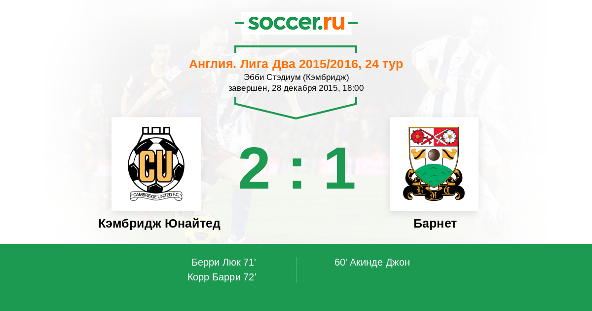 Протокол матча Кэмбридж Юнайтед против Барнет