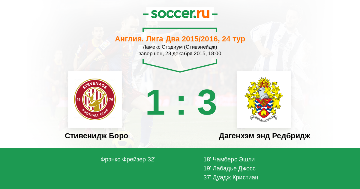 Протокол матча Стивенидж Боро против Дагенхэм энд Редбридж