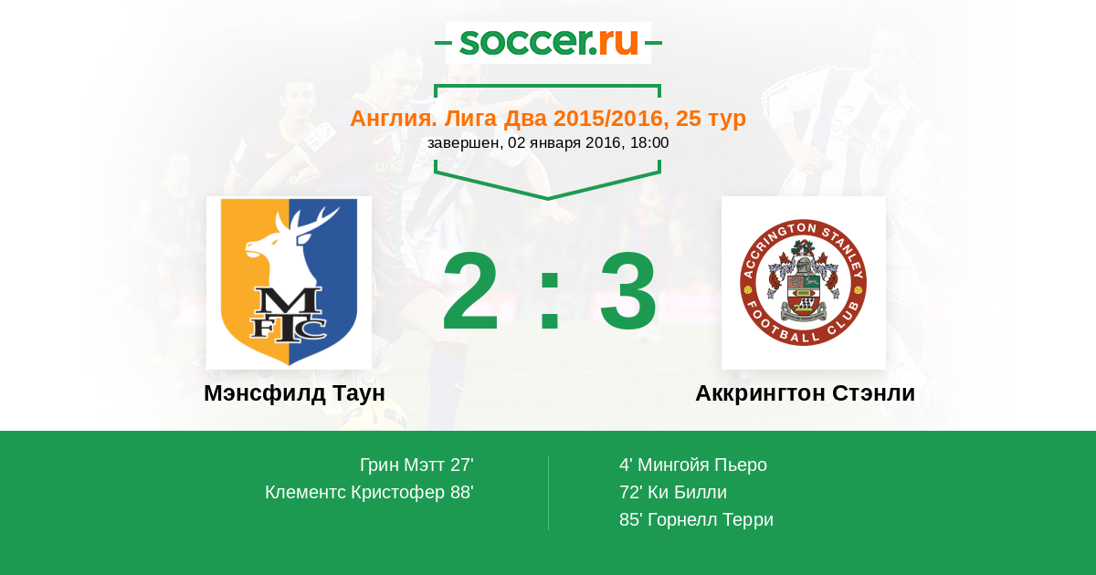Протокол матча Мэнсфилд Таун против Аккрингтон Стэнли