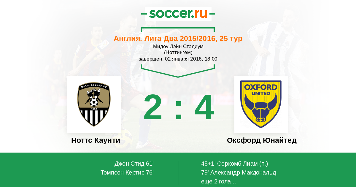 Протокол матча Ноттс Каунти против Оксфорд Юнайтед
