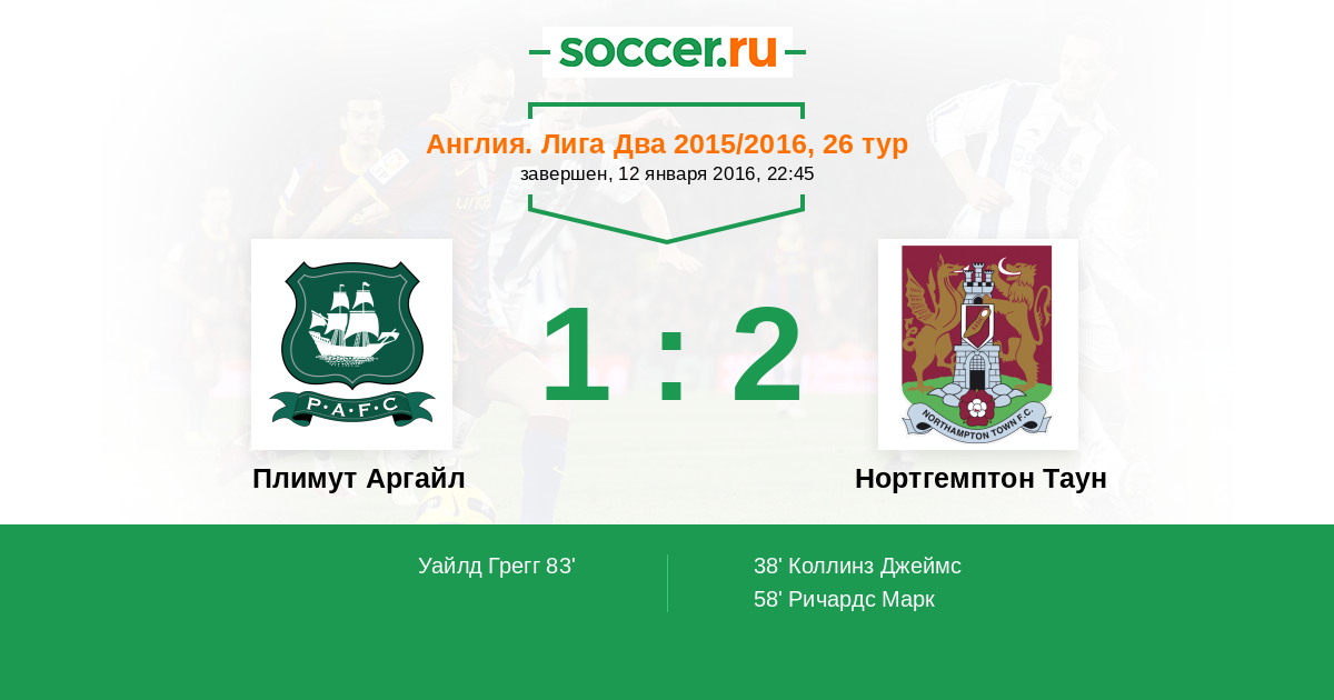 Протокол матча Плимут Аргайл против Нортгемптон Таун