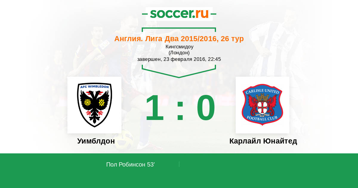 Протокол матча Уимблдон против Карлайл Юнайтед