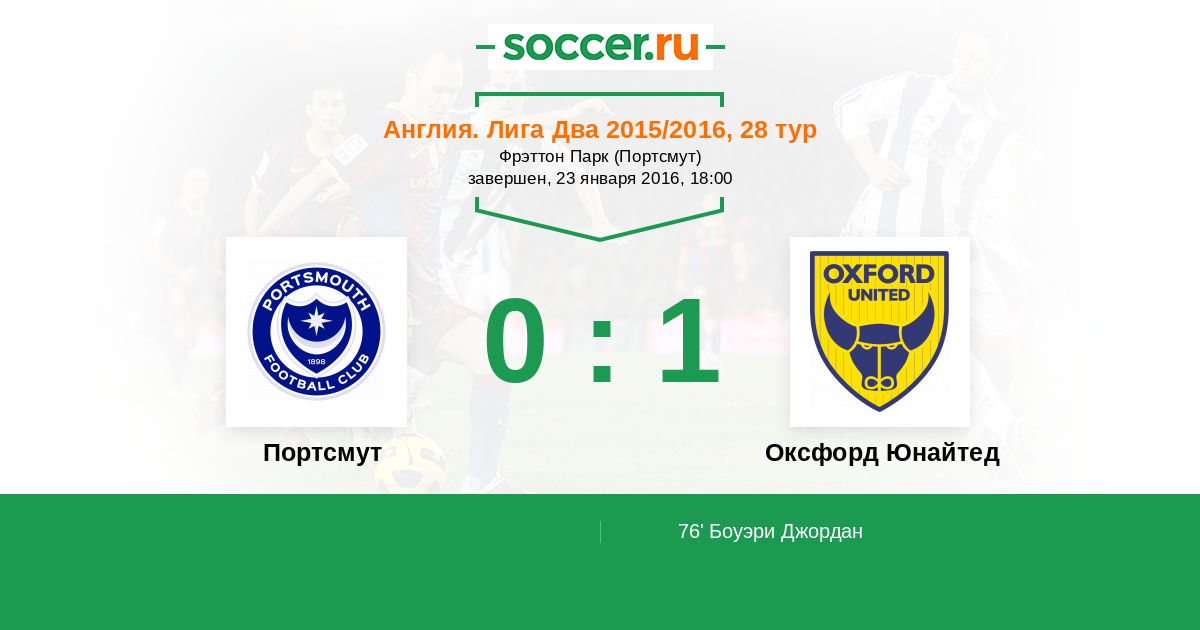 Протокол матча Портсмут против Оксфорд Юнайтед