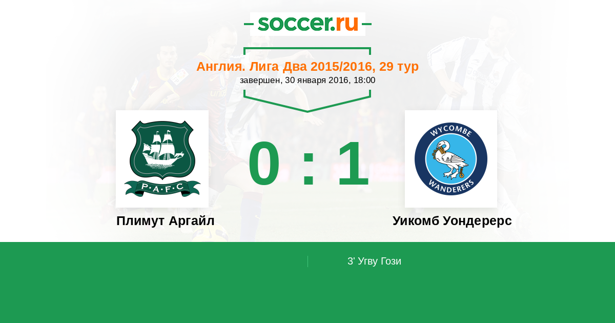 Протокол матча Плимут Аргайл против Уикомб Уондерерс