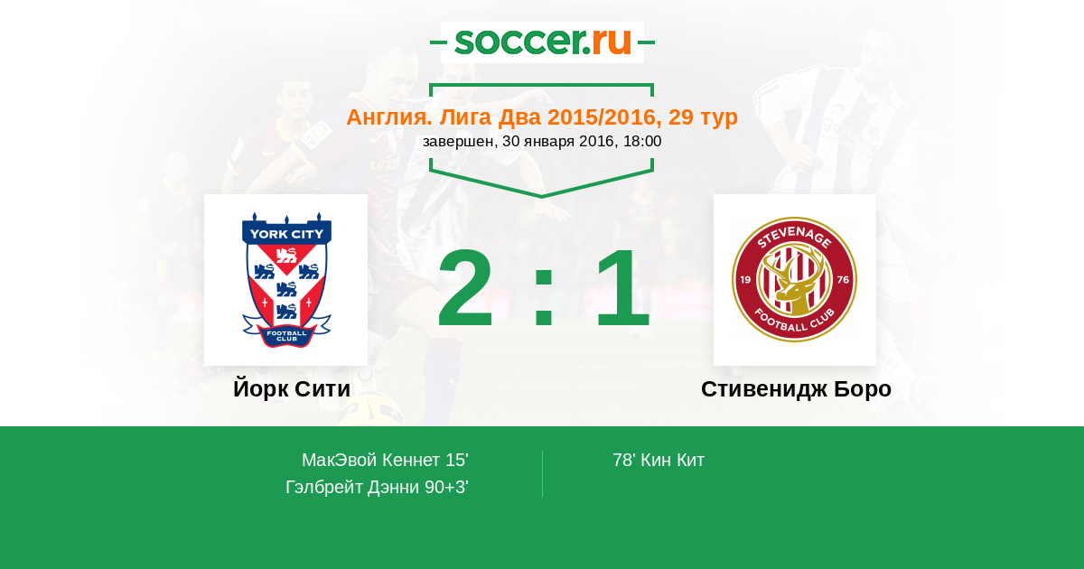 Протокол матча Йорк Сити против Стивенидж Боро