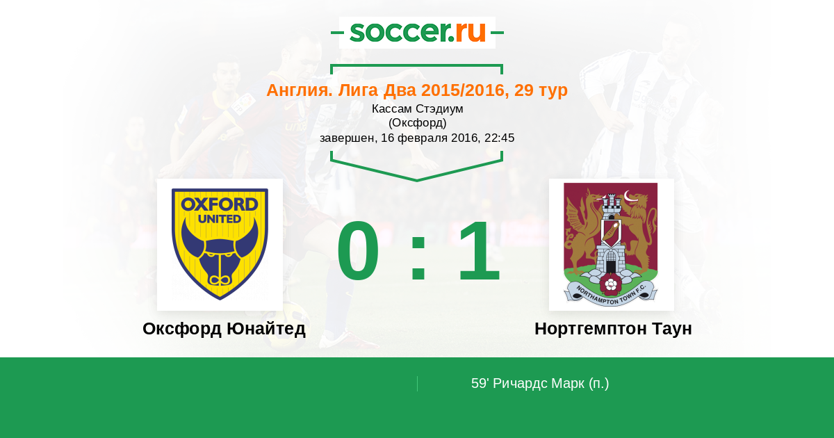 Протокол матча Оксфорд Юнайтед против Нортгемптон Таун