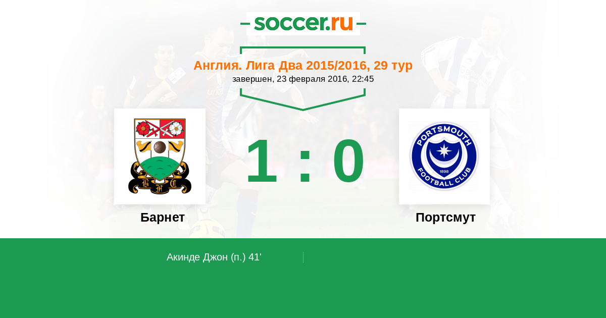 Протокол матча Барнет против Портсмут