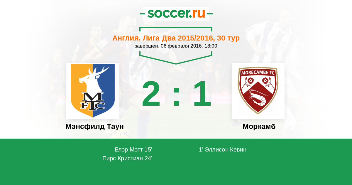 Протокол матча Мэнсфилд Таун против Моркамб