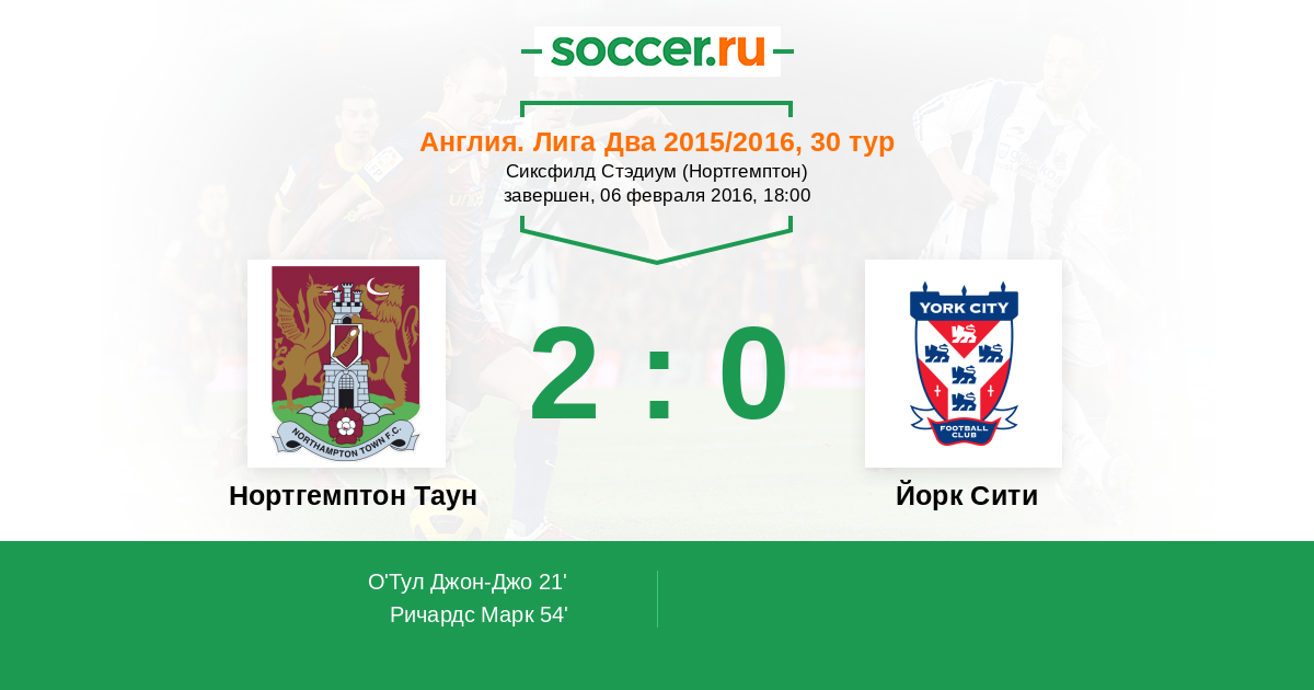 Протокол матча Нортгемптон Таун против Йорк Сити