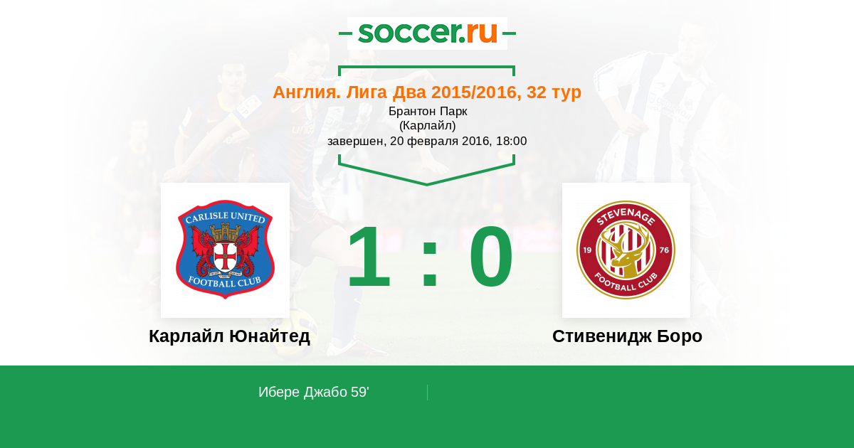 Протокол матча Карлайл Юнайтед против Стивенидж Боро