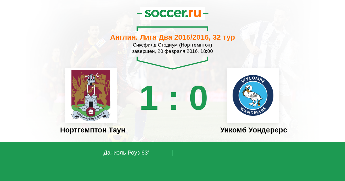 Протокол матча Нортгемптон Таун против Уикомб Уондерерс