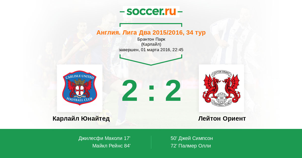 Протокол матча Карлайл Юнайтед против Лейтон Ориент