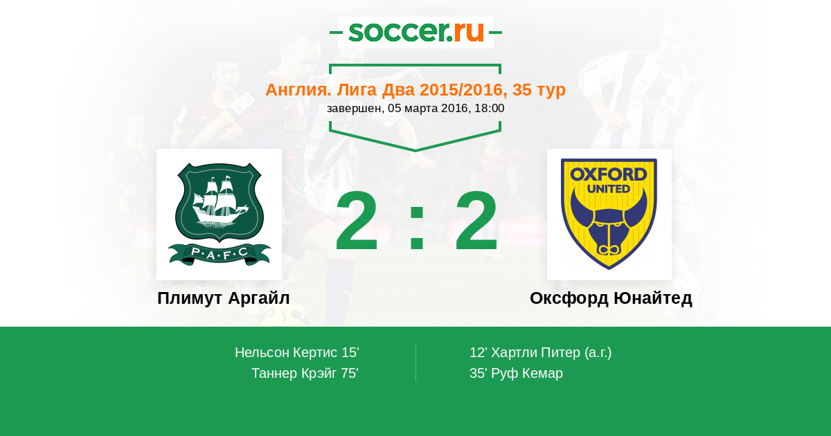 Протокол матча Плимут Аргайл против Оксфорд Юнайтед