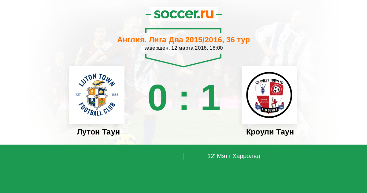 Протокол матча Лутон Таун против Кроули Таун