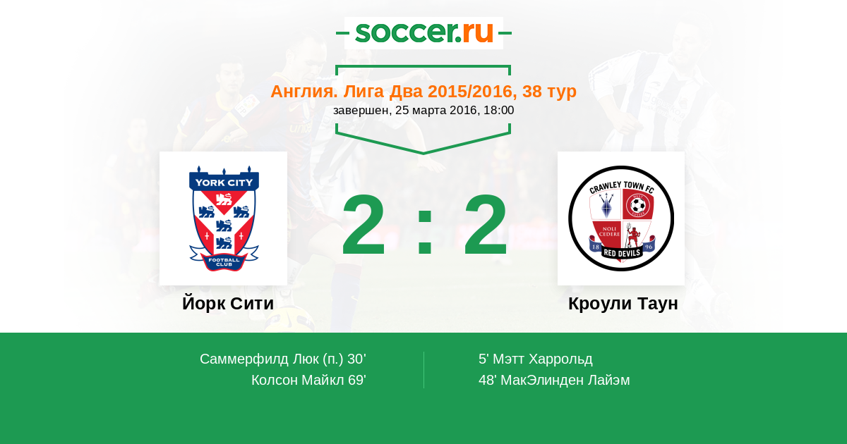 Протокол матча Йорк Сити против Кроули Таун