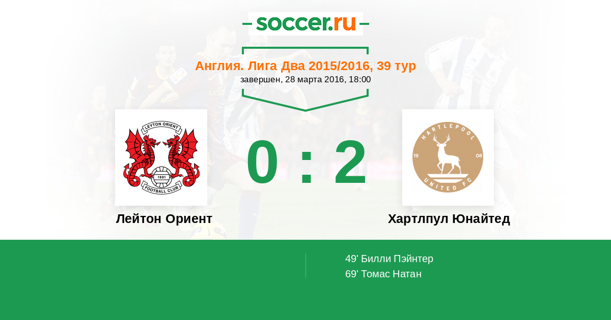 Протокол матча Лейтон Ориент против Хартлпул Юнайтед