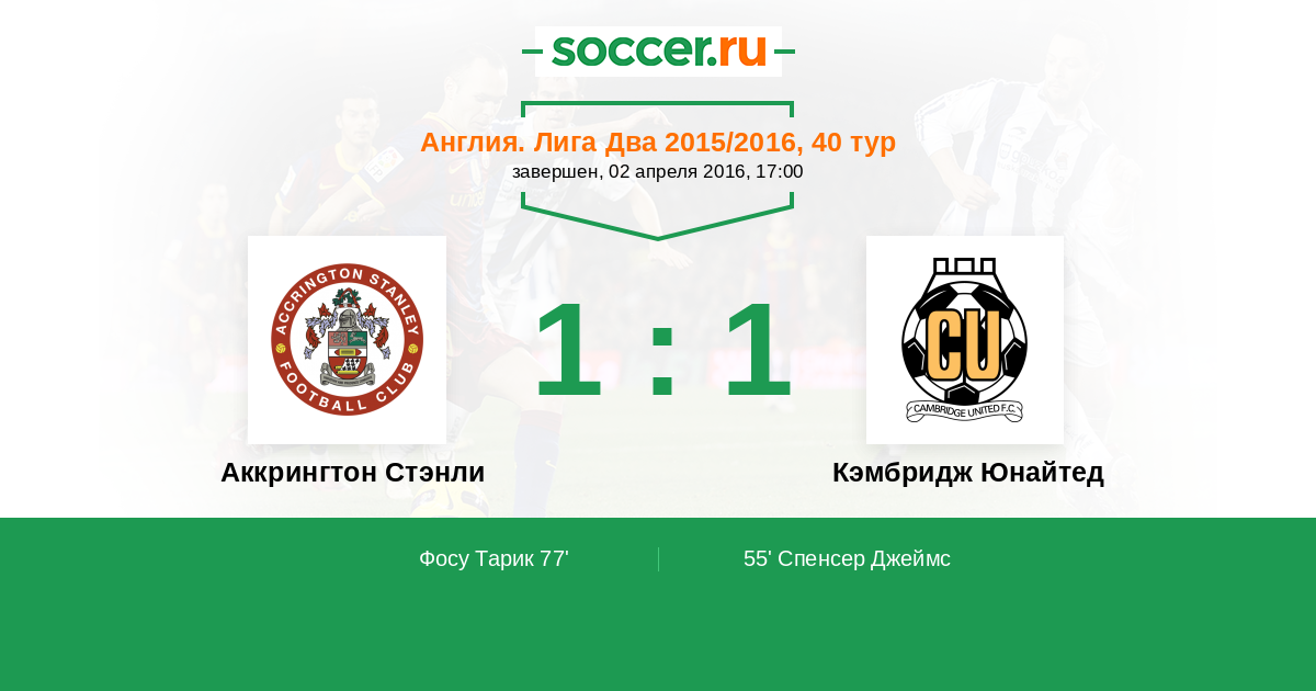 Протокол матча Аккрингтон Стэнли против Кэмбридж Юнайтед
