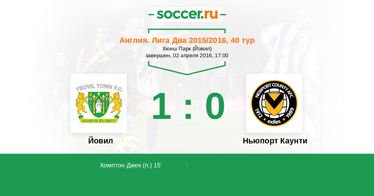 Протокол матча Йовил против Ньюпорт Каунти