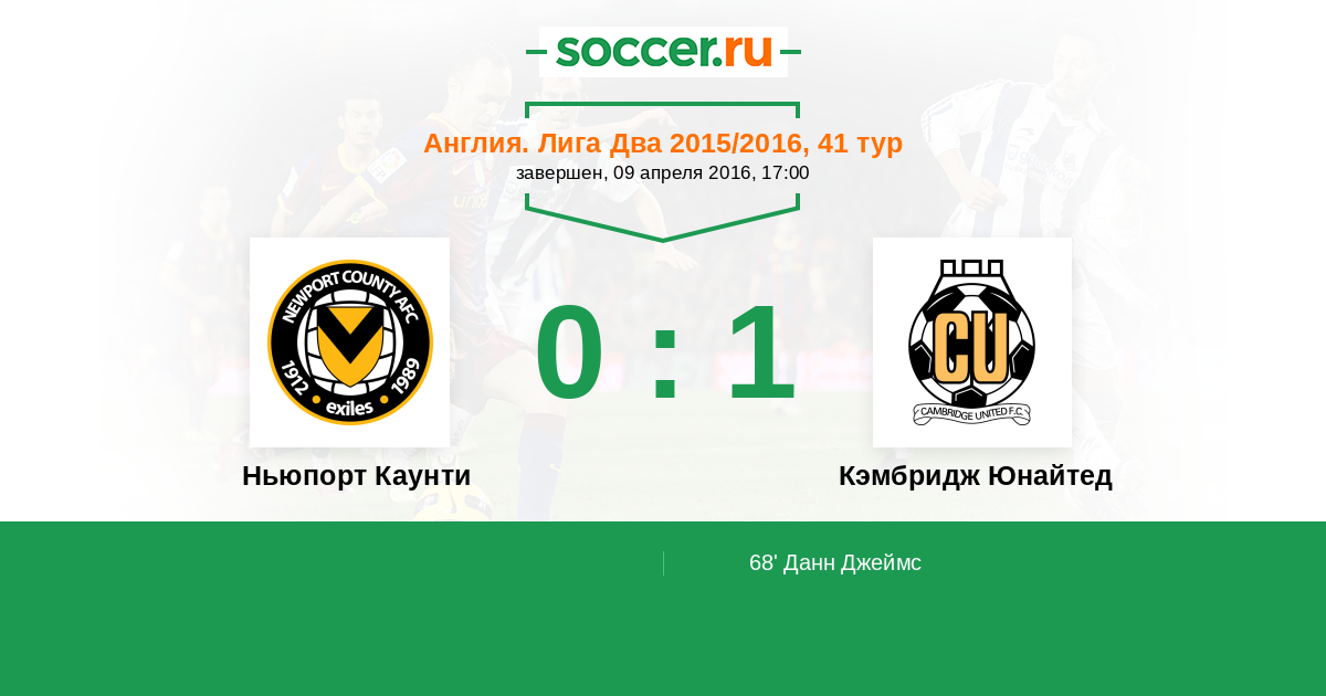 Протокол матча Ньюпорт Каунти против Кэмбридж Юнайтед
