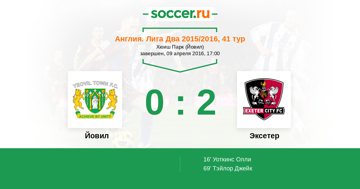 16' (0:1) Уоткинс Олли (29) (Холмс Ли (10))