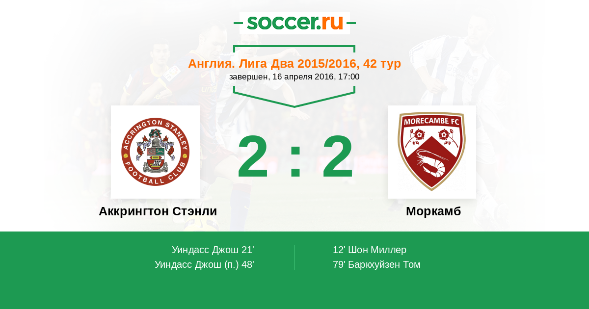 Протокол матча Аккрингтон Стэнли против Моркамб