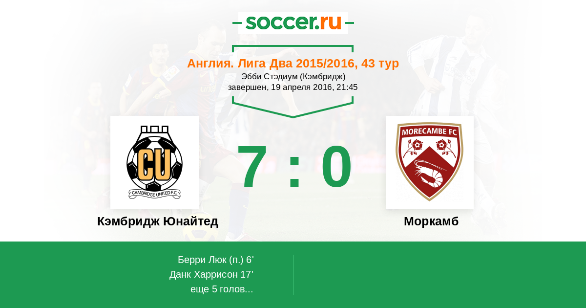 Протокол матча Кэмбридж Юнайтед против Моркамб