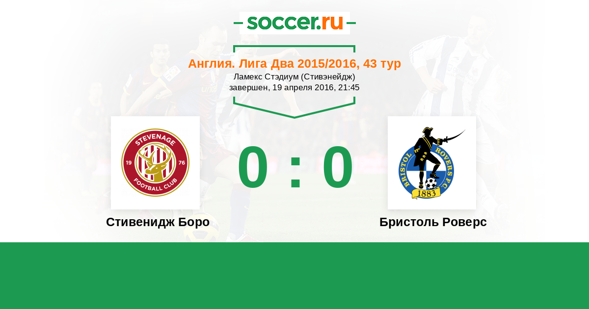Протокол матча Стивенидж Боро против Бристоль Роверс