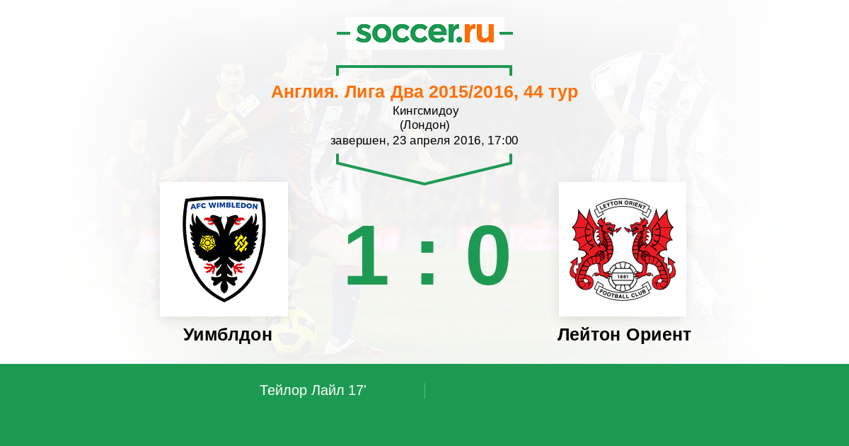 Протокол матча Уимблдон против Лейтон Ориент