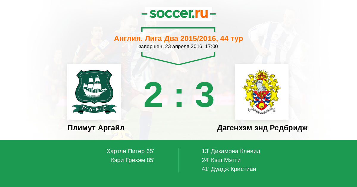 Протокол матча Плимут Аргайл против Дагенхэм энд Редбридж