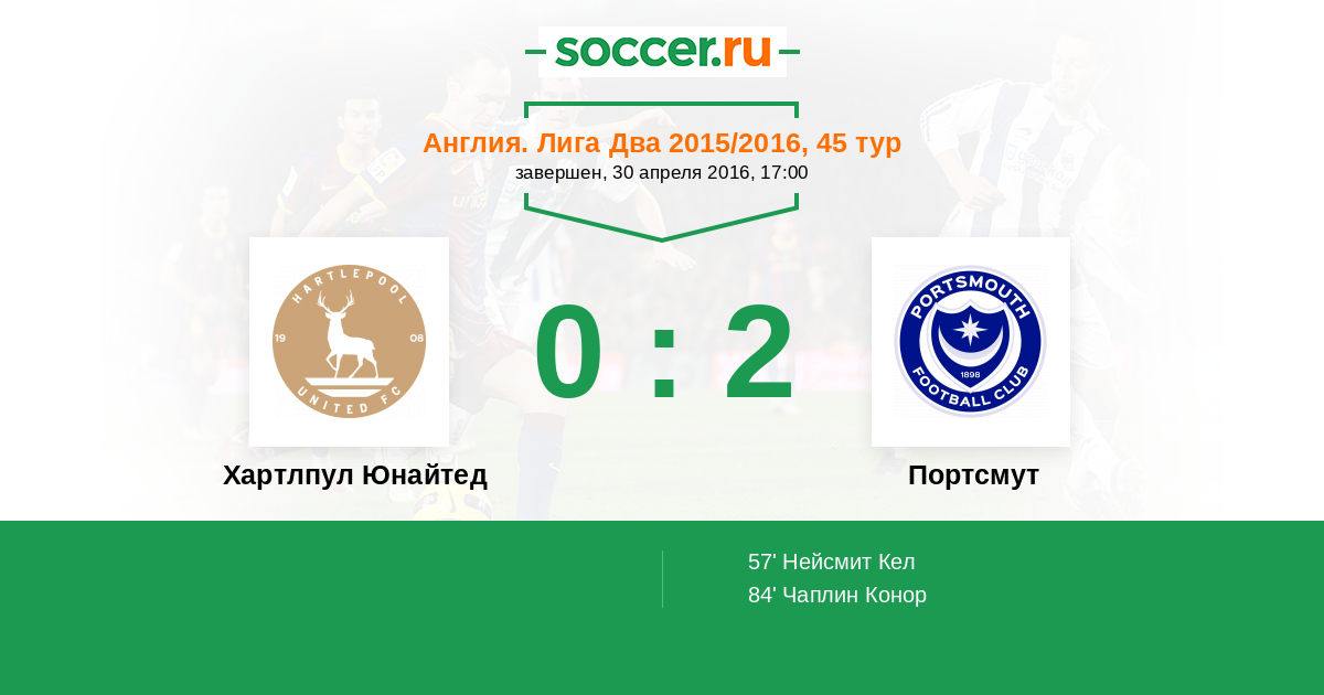 Протокол матча Хартлпул Юнайтед против Портсмут