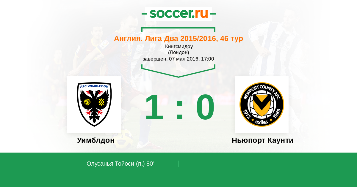 Протокол матча Уимблдон против Ньюпорт Каунти