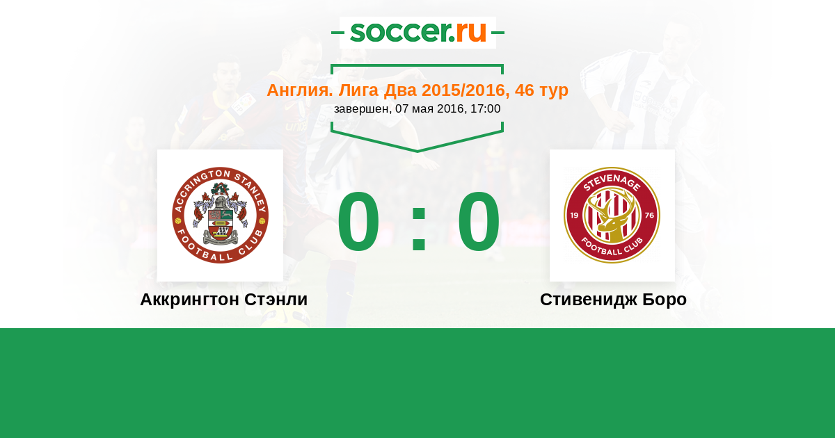 Протокол матча Аккрингтон Стэнли против Стивенидж Боро